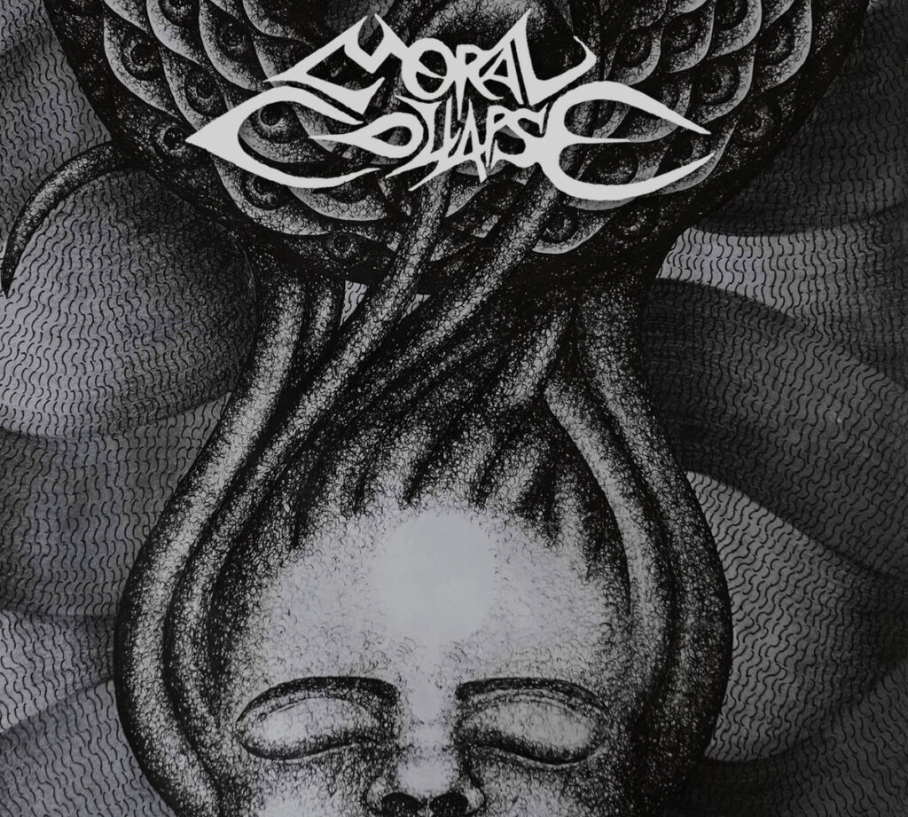 The guitar is the instrument I know. Picking an Ibanez Jumpstart at a young age, and despite shamefully never progressing beyond mediocrity, I was suddenly on the road toward discovering this infinitely wide and obscure umbrella of progressive metal. Naturally, the guitar work is usually what I pick apart first on listening to new music, so believe me when I say I was rocked by the drums on Moral Collapse’s self-titled debut. It’s often more difficult for me to identify drummers by their playstyle but something about the musicality among the inhuman blast beats seemed extremely familiar. It was no surprise to discover that the man behind the kit in this case is Hannes Grossmann of Alkaloid, Blotted Science and Obscura fame, not to mention the seminal tech-death masterpiece, Necrophagist’s Epitaph. I could gush more about these drums but I should probably introduce the rest of the band.