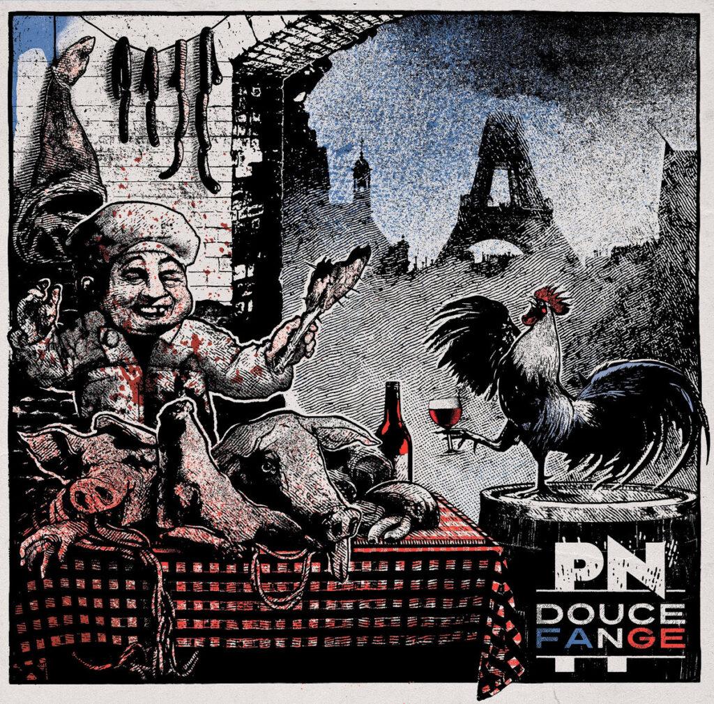 The album’s cover excellently depicts what it feels like to listen to Douce Fange as a lover of symphonic black metal, featuring a slightly deranged chef concocting a decadent feast that is almost too much. However, one doesn’t so much need to feast on the whole pig like the cover suggests but rather a few choice cuts. Likewise, the complete instrumental insanity–juggling a mix of the normal metal suspects of distorted guitar, bass, and blasting drums, as well as accordion, saxophone, trumpet, double bass, and others–primarily contributes to the album’s memorability as a whole. Unfortunately, the collective craziness also leads to Douce Fange’s greatest pitfall, which is that while the entire affair is raucously fun, recalling momentary highlights–heck, even differentiating between insane tracks–even almost a dozen listens later becomes difficult. Balancing so many different elements of their songs makes the tightrope walk sway a little bit, but the band still manages to cross safely. How could they not with explosions of sound like in “Le Tango du Vieuloniste” where French folk music plays atop Folterkammer-esque neoclassical black metal and vocal operatics, cut out with glissando-filled trem picking à la Panegyrist?