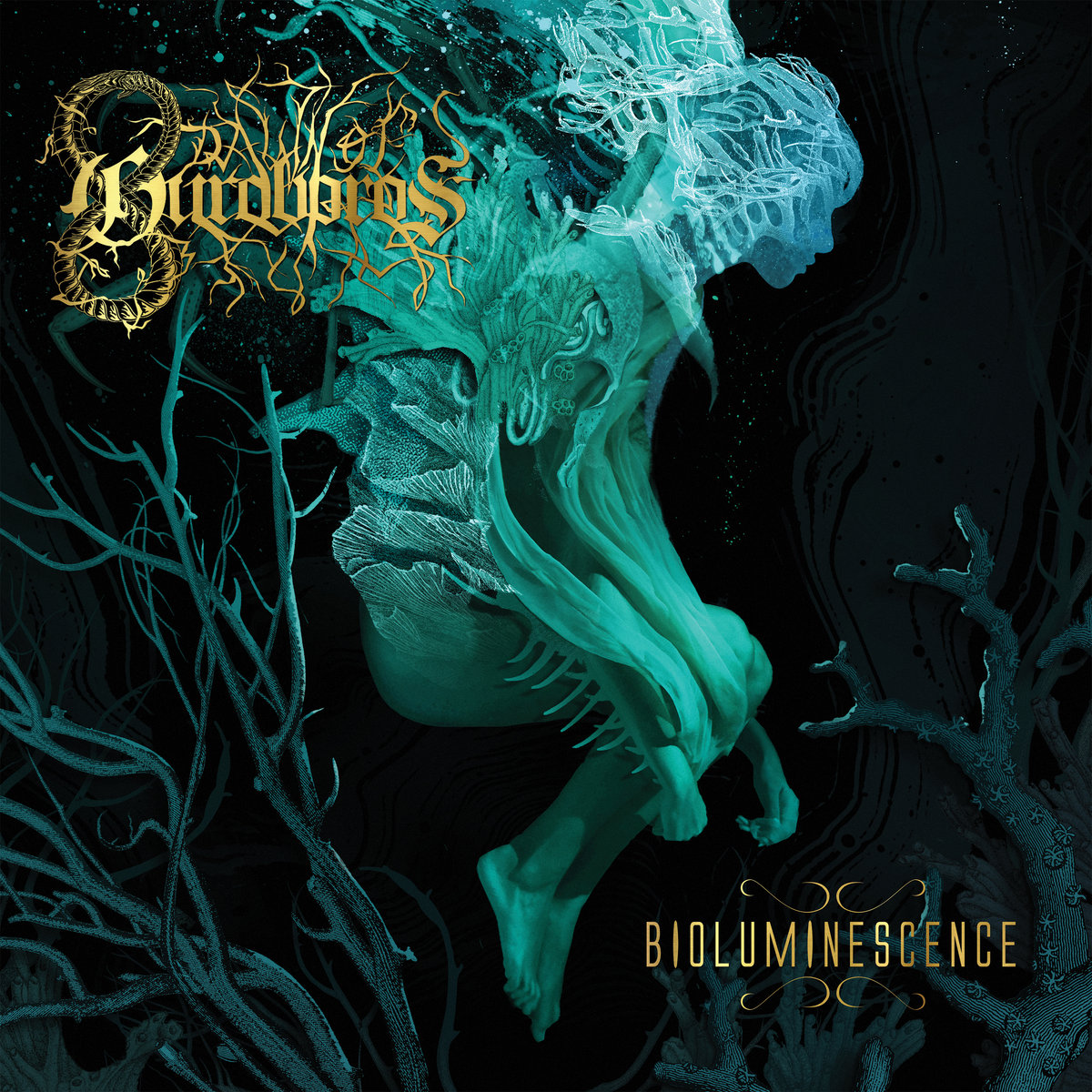 From the first notes of the title track and opener, one thing is clear—and it’s the production. Dissonant guitar riffage rings out as a wicked blast beat constantly shifts in and about itself and walls of ambient reverb wash over the listener, but nothing gets lost to my ears. When Chelsea Murphy’s harsh vocals enter, they too are crystal clear, adding a crisp heaviness to the cathartic fretwork. The production especially stands out on tracks like “Poseidon’s Hymn” and “Dueling Sunsets” where electronic and symphonic elements join the fray without once getting muddy; tambourine even gets thrown in there once or twice. If I were to change just one thing about this album’s mix and master, I’d have simply widened its dynamic range. For an album that vacillates between such delicate and bludgeoning moments, it shouldn’t be limited to such a small range of volumes. Still, Bioluminescence alleviates my biggest criticism of its predecessor within just a few notes.