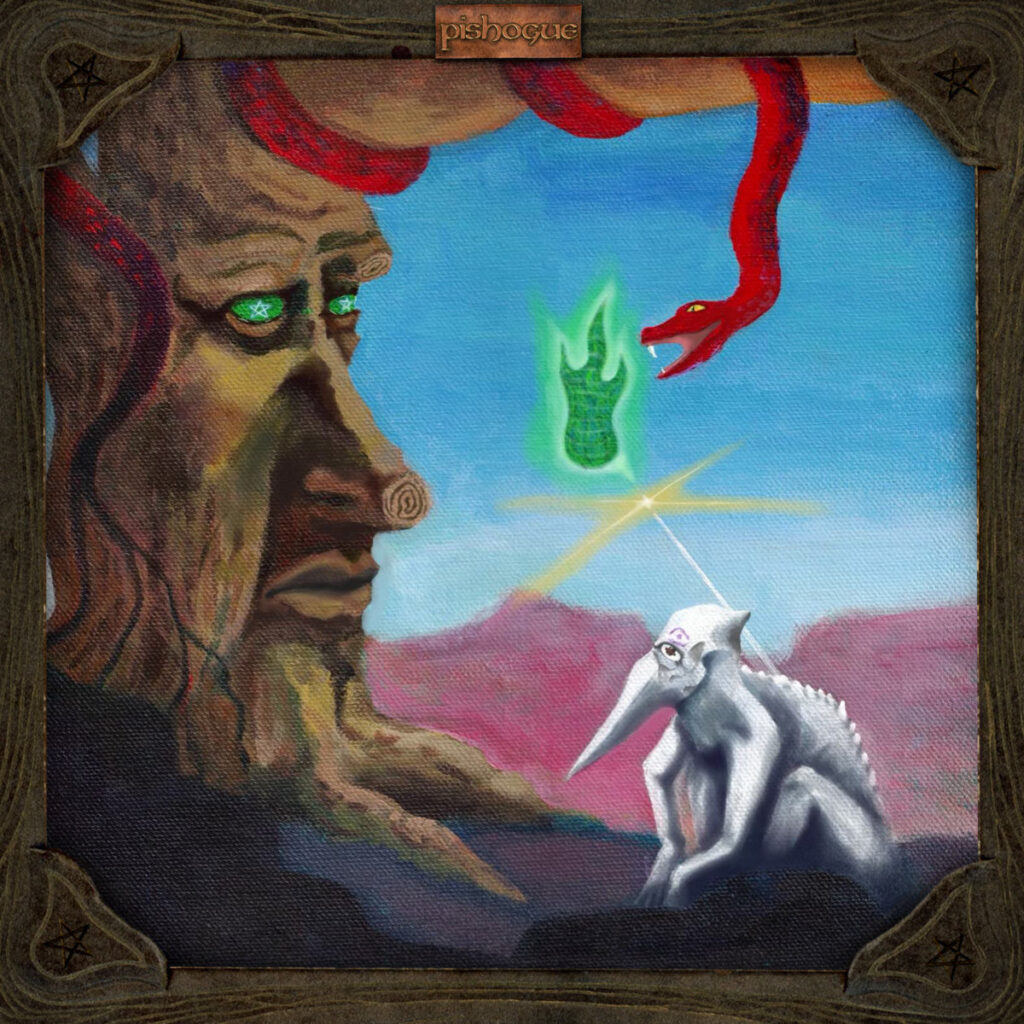 Very few works are as satisfying to come across as an overly ambitious yet brilliant opus. Azure’s Fym, Dissona’s Paleopneumatic, and Native Construct’s Quiet World are journeys across fantastical landscapes and across genres, dedicating themselves to a persistent theatrical grandeur; their lofty goals are overwhelmingly successful, and a slight lack of polish lends these records a timeless charm and a much-needed sense of humanity. Enter Pishogue, a genre-transcending duo featuring Georgia’s Finnian Boyson as Bælor’Throndoth and Tennessee’s Spife as, uh, Spife. Pishogue’s self-titled LP explored menacing and hypnotic Berlin school synths as a framework for an expansive story involving the collapsed continent of The Eldslunds, a setting rife with advanced technology, magical corruption, and prophecy. The duo’s latest release, The Tree at the End of Time, wholly recontextualizes the synths of Pishogue into a symphonic prog framework, detailing a pivotal moment in The Eldslunds’ history involving the transfer of knowledge and subsequent ascension of a Pishogue introduced in the debut. Like the titular character, do Pishogue transcend their expectations or do they collapse under the weight of their ambition?